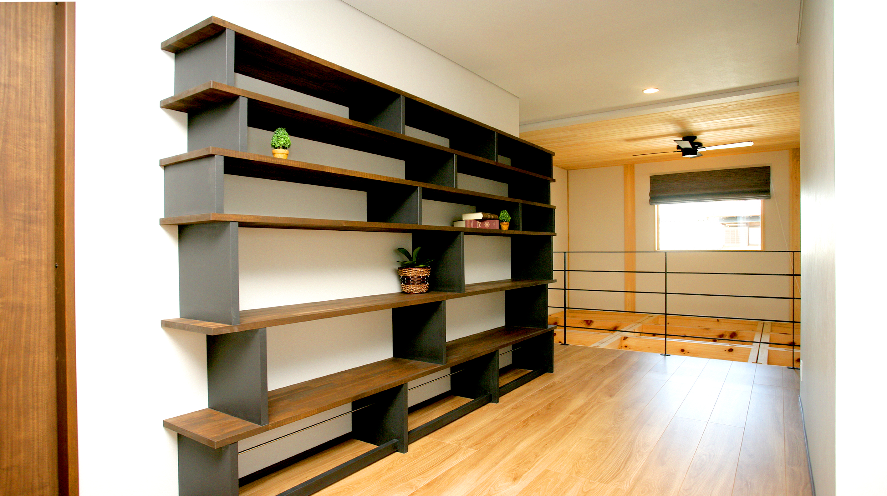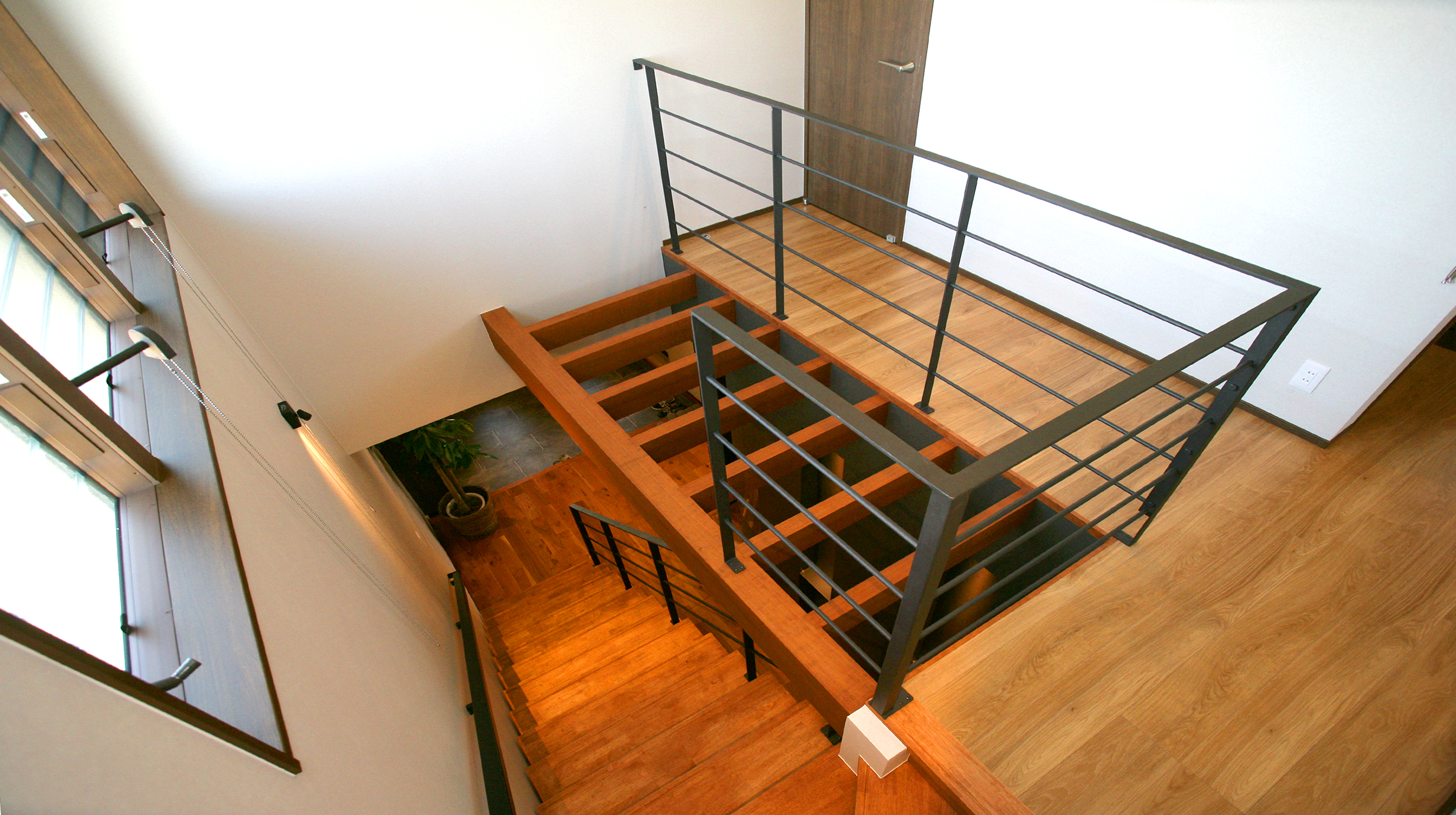 吹き抜けをつくって二階の子供スペースで遊んでても安心できるようにしたい。