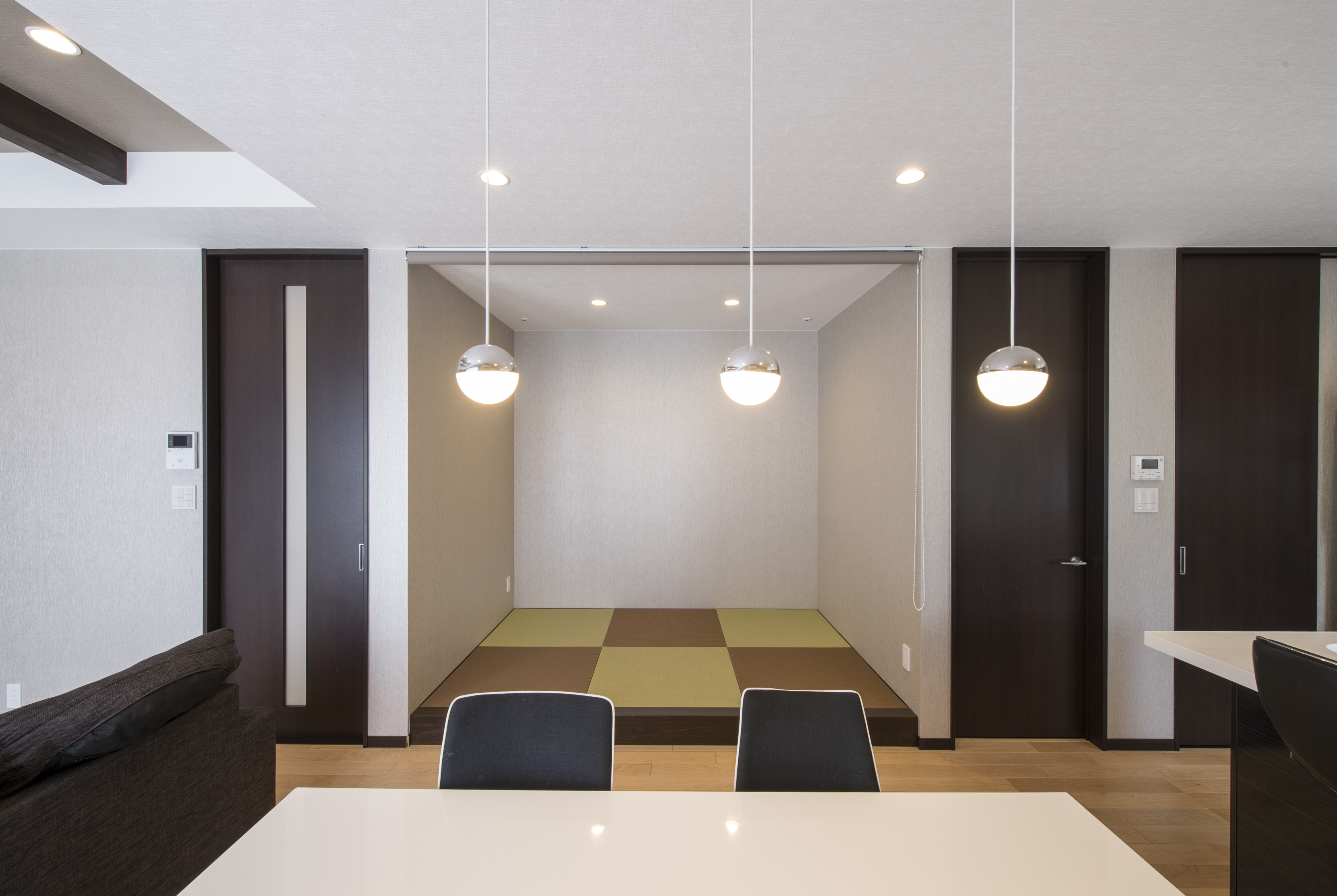 また、お子さまが多い家庭なので畳コーナーをリビングルームに設け、遊んでいても目が行き届くよう